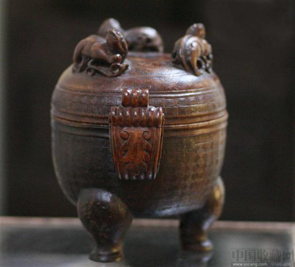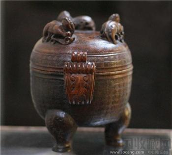 清竹雕仿青铜器簋高17.5CM。器型美观,雕刻细腻,包桨老熟,十分罕见。收藏就是要收藏独一无二的东西。电话:13588871797