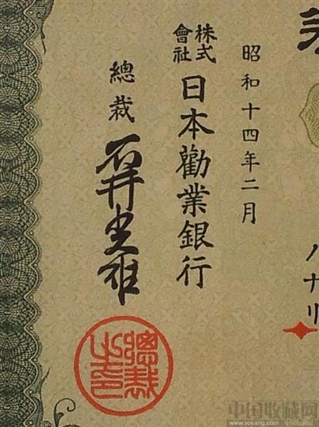 此票:欧洲回流品。民國昭和十四年日本贮蓄债券金七圓五拾钱第九回震惊奇异!尺寸70mmx128mm,正面左侧:株式会社“日本酄業銀行”昭和十四年二月總栽签名下盖圆章。右边:第九回下中华民國”酄業銀行”长方红章!边框为绿色漂亮花纹图案组成!随着时间推移“官票”离发行将近百年民國古董了、古话说:穷归穷家里有三两铜.家中收藏点民國老货!目前收藏纸币可冲抵物价飞涨还可保值增值玩赏珍藏回忆历史欣赏,一举两得!此票币漂亮顶绝、震撼惊叹!品相如图:先人一步珍藏、增值!集藏品市场历来有物以稀为贵之说,因而具备了较高的收藏价值.友情提示:本网不在线!藏友留言请直接qq:740801984或者打手机联系:13818537070谢谢合作!