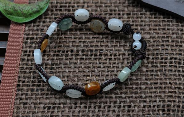 DT0851 天然翡翠A货冰糯种 翡翠三彩金钱手链/手串 随机发货