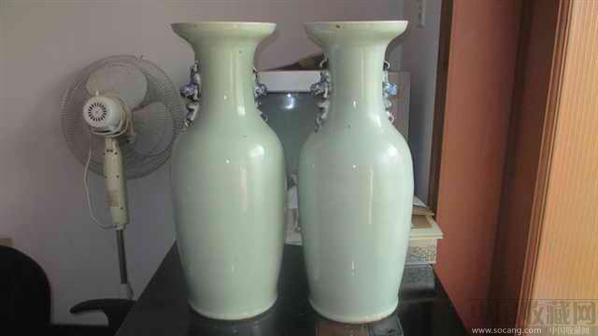 相关藏品: 发一个300件少见的高62CM豆青加白龙绕牡丹吉祥瓶一对全品完整