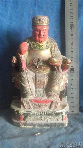 财神爷老木雕,身穿吉祥衣服,而且很好