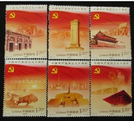 2011年中国共产党成立90周年发行纪念邮票一套,一套6张。好品相,放心购买!电话:13006592958