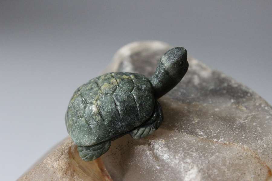 独玉巧雕巴西龟 尺寸:1.8*1.6*1厘米 精美巴西龟,独山玉雕琢,精妙的选材,运用独山玉特有颜色,简洁雕琢,巴西龟悠然而成,惟妙惟肖,极品。