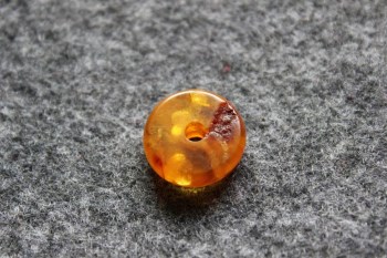 琥珀扁珠 尺寸:1.5*0.6厘米 重约1.5克 天然琥珀,特征典型,颜色淡黄,树脂光泽,含有天然包裹体,光素无纹,不错的小配珠。