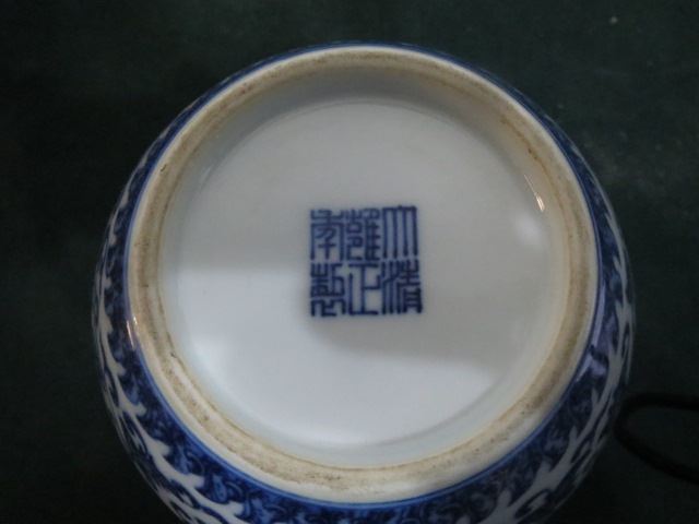 备注:经过明代嘉靖、万历两朝的发展,花觚的造型也更加多样化。花觚始于元代,主要流行于明嘉靖、万历至清乾隆这一段时期。早期的花觚除了陈设用之外,民间多用于插花,布置厅堂。花觚的造型隽秀,端庄大方,线条变化十分丰富。常见的有五彩花觚和青花花觚两种。装饰题材有人物故事、民间传说、缠枝花卉或是花鸟等。花觚的时代特征十分明显,明代的花觚主要是三段式的,上面是喇叭口,中间是鼓腹,下部是凤尾,此雍正青花花觚器型古朴典雅,端庄秀丽,色泽淡雅而深沉,釉质晶莹光洁,胎釉结合紧密。