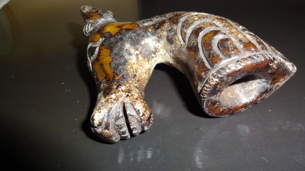 规格:8*6.3cm 玉马头包浆明显,褐色。部分有鸡骨白。汉八刀明显。古意盎然。
