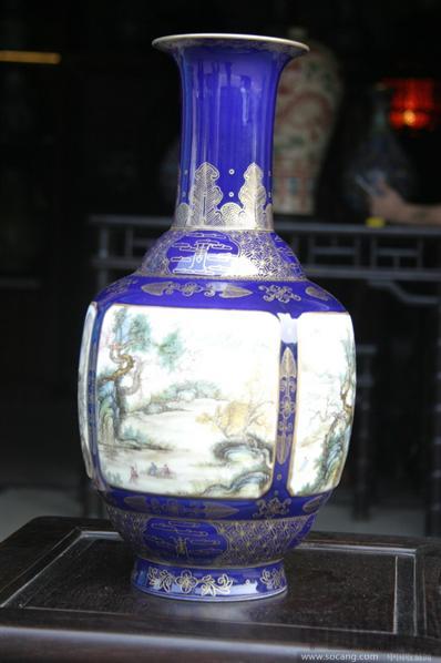 此瓶以蓝地描金四开窗,画工精细,器形精美大方,底款-大清雍正年制,是一件非常难得的官窑器物。;赝品包退.联系电话:13923104666QQ:229066473