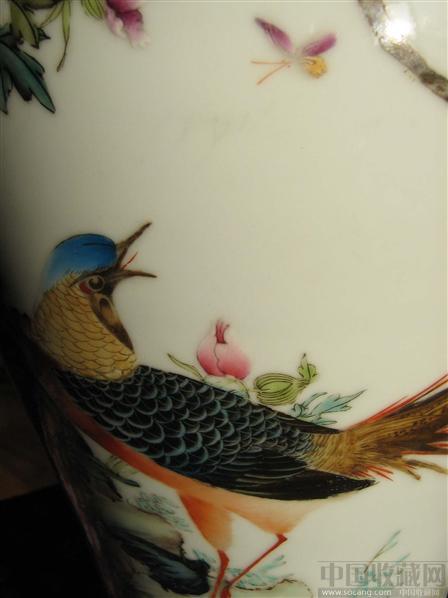 ;;;清雍正粉彩观音瓶,瓶面绘有牡丹、雉鸡、石榴纹,寓意富贵、吉祥、多子多福。纹饰精美,花有绒毛,叶有露珠,体现了雍正粉彩高超的艺术水平。釉面洁白,宝光内蕴。牛毛纹密布,瓶口鎏金,胎质细腻,为到代精美之物。电话:0421-2619495,手机:13904918681,QQ号:1106055909