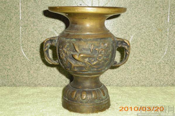 民间精美高浮雕铜花瓶.生动的浮雕工艺.厚重的用料.绝佳的收藏极品.高12CM.口径9CM.重586克