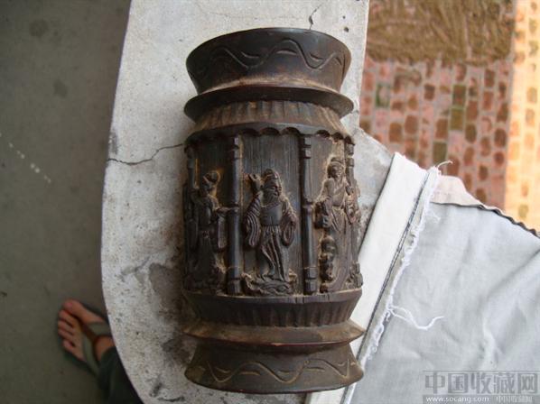 八仙人物浮雕竹笔筒,高18.2公分,直径(宽)10公分,重0.75公分,壹个.