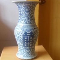 清嘉庆缠枝莲喜字带成化款青花花觚