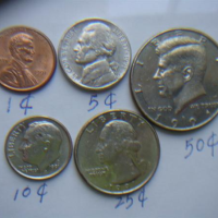 美国硬币系列之1987年1美分5美分10美分和25美分