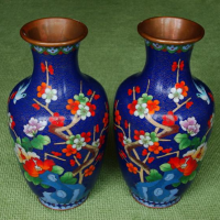 [牡丹梅花图]铜胎掐丝珐琅瓶一对