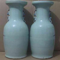 发一个300件少见的高62CM豆青加白龙绕牡丹吉祥瓶一对全品完整