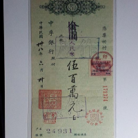 民国卅八年“中孚银行”伍佰万元金圓票改人民币少见