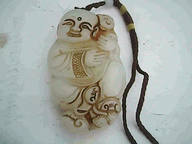 明清和田籽料雕洪福齐天把件规格:6X3.5/cm(题材:童子举猴与头齐,猴通孙悟空,意为洪福齐天。)