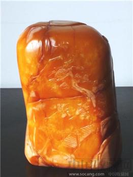 此清晚期寿山山水人物薄意雕田黄冻石摆件质温潤凝腻,薄意雕刻生动传神。