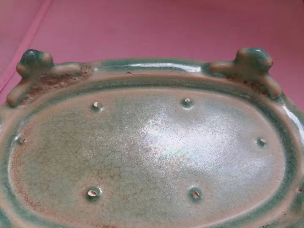 宋代汝瓷椭圆形洗,口直径约23厘米,属于大开门一眼真品。
