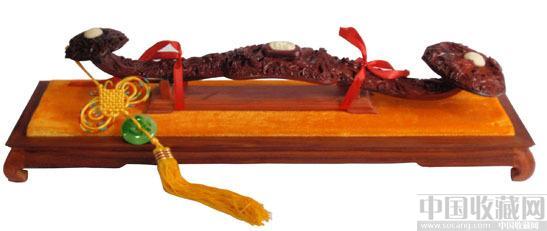 【名称】小叶紫檀如意【尺寸】(底座)长57cm宽17cm高5cm;;;(如意)长50cm宽8cm高4cm;;;;;;;;;【材质】小叶紫檀;【描述】产品简介:如意是一种象征祥瑞的器物,头部呈弯曲回头之状,柄端为小灵芝形、云朵形多种形状。头尾两相呼应,主体呈流线形,柄微曲,造型美观华丽。;;;古代作为工艺美术品的如意,以清代为多,明代亦有但少见。康熙年间,如意成为皇宫里帝王及达官贵人的手中之物,宝座旁、寝殿中均摆有如意,以示吉祥、顺心。《清朝野史大观》卷一载:“如意,物名也,唐宋前已有之。”如意的品类有珐琅如意、木嵌镶如意、天然木如意、金如意、玉如意、沉香如意等等。清代的皇帝、皇后用如意作为赏赐王公大臣之物;在皇帝选妃时,若将如意交入一人手中,那就意味着她将成为皇后;民国时代,如意成为贵重礼品,富有之家相互馈赠,祝愿称心如意。;;;如意手柄上通体雕刻九条升降各异,互不雷同的飞腾金龙,九龙各具神韵,在祥云中穿行,每条金龙都是经精雕细琢而成,鳞片、龙须等丝毫毕现,万缕金光在龙身上闪耀,龙身抖动,曲颈昂首腾跃于空,龙须目怒张,阔口长须,鳞爪锐利,肘毛如剑,硕长的龙躯搅动着云气,势不可挡,犹如真龙再现,宛然如生。整体呈缕空状,龙身流畅,纹路繁而有序,疏密适当,严丝合缝,极富美感,不但增添了如意的韵味,更传递出尊贵连绵、福气安康、节节高升等美好祝福。联系方式:电话:0579-86841666;;;;传真:0579-86635189;;;电话:0579-86841666;;;;传真:0579-86635189;;;地址:浙江省东阳市树德南路48;号;;;;网址:;;竹编:;;邮箱:;;;;电话:0579-86841666;;;;传真:0579-86635189;;;地址:浙江省东阳市树德南路48号;;;;网址:;;竹编:;;邮箱:;;;;