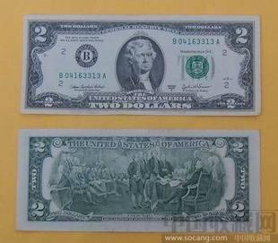美国2元纸币、少见。很值得收藏、流通品喜欢别错过机会。