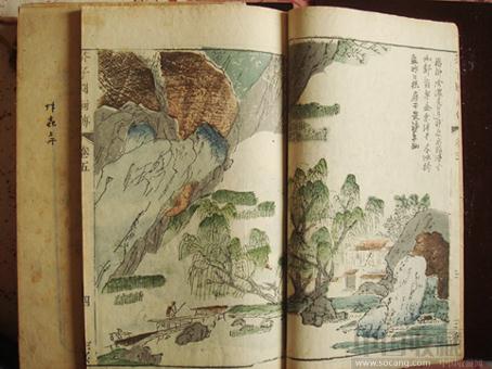 清嘉庆[芥子园画传].设色老木版本十二册.李笠翁先生论定.其中第一集山水图谱于康熙十八年(1679)以木版彩色套印成书,并以沈心友的岳交李渔的别墅“芥子园”为书命名。原分为3集:第一集山水,分画学浅说、设色、树谱、山石谱、人物屋宇谱、名家山水画谱等部分。第二集梅兰竹菊。第三集花鸟(又分花卉草虫、花木禽鸟两卷),内容与第一集大致相同。第四集于嘉庆二十三年(1818)由书坊擅将丁臬的《写真秘诀》、上官周的《晚笑堂画传》等人物画谱中的图绘,合编为《仙佛图》、《贤俊图》、《美人图》、末附《图章会纂》,合刻成第四集,刊印行世。此画册是嘉庆重镌.共12本,册长27.2宽16.6公分.央视2007年4月5日民间寻宝-走进唐山的专家组,评定嘉庆年芥子园画传为唐山寻宝“十大民间宝物之二”。专家罗勇来说:大家千万不要小看这套书。它是清代嘉庆年间的,刻的一套水印木刻的彩色的水印木刻,套版的一套《芥子园画谱》。这套画册是彩色的,而且是我们中国自己创造的一种早期印刷品。它是用多块的木版加上水色,然后套印出来的一套颜色。它的产地是在江苏南京,嘉庆到现在有200多年了,就是说在北方发现了南方的这么一套到现在保存得很好的一套画谱,是非常不简单的。出版社出版了一套光绪版的已经很珍贵了,那么这个嘉庆版就更稀有了,所以这套东西记录了我们早期的水印木刻的一种技巧,是一个见证,所以非常不容易。我们专家组给它评价了一下,给它评了20万元。此次的专家组成员有蔡国声,金申,王春城,毛晓沪,李彦君等。全册将山水人物,石树花草,虫鸟竹菊,亭台楼阁等一一画尽,不愧是学习国画的杰出的教材,培养国画大师的全威的范本.十二本保存的十分完好,欣赏性极高.不论是学习,收藏,传家,玩赏都十分相宜.如此的品相,存世的可不多.联系13709224661