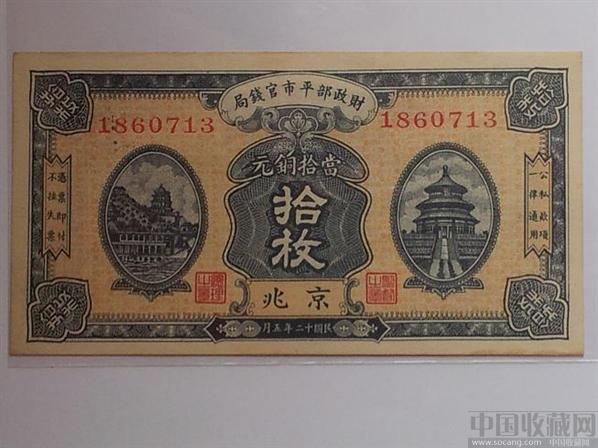 此铜元券票面美观,票面是北京天坛祈年殿、颐和园石舫皇家名胜古迹,实属罕见。此票为袁世凯执政时期的财政部平市官钱局所发行,民国三年(1914年)底成立于保定,次年开始发行铜元票。至今国内外出版的各种钱币书刊,在介绍财政部平市官钱局发行铜元票时,众口一辞称其最早发行的年份为民国四年,1926年12月平市官钱局改组为官商合办的京兆银钱局。随着时间推移“官票”离发行将近百年民國古董了、古话说:穷归穷家里有三两铜.家中收藏点民國老货!目前收藏纸币可冲抵物价飞涨还可保值增值玩赏珍藏回忆历史欣赏,一举两得!官票越来越少价值收藏体现就很高!此票币漂亮顶绝、孤品震撼惊叹!虽然当时的中國还很落后,但此票的纸质却是很精细漂亮的。实属中华民國國粹産物之写照。绝版珍贵珍藏增值!今实属凤毛麟角。这是大缺票、非常难得、、、很稀少的票!品相如图:原汁原味、先人一步珍藏、增值!集藏品市场历来有物以稀为贵之说,因而具备了较高的收藏价值.友情提示:本网不在线!藏友留言请直接qq:740801984或者打手机联系:13818537070谢谢合作!;;