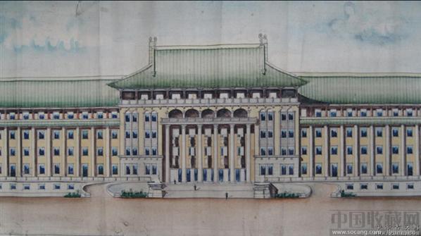 【建筑设计名家——王辅臣的经典手稿共26幅】之一【地质宫】郭沫若题,在满洲国宫廷“太和殿”负一层和正一层框架基础上所盖,121厘米×40厘米。【满洲国皇宫园林建筑设计名家——号称总师王辅臣的经典手稿共26幅】之一【地质宫】手稿原件,堪称代表作!该宫殿式建筑是长春第一座超大型仿古建筑,也是城市标志性建筑。【整体出让,联系电话:13814637995】【地质宫】郭沫若题,在满洲国宫廷“太和殿”负一层和正一层框架基础上所盖,121厘米×40厘米。背景资料:地质宫1934年3月1日,经日本政府批准,“满洲国”实行帝制,称“大满洲帝国”;“满洲国执政”爱新觉罗·溥仪加冕为“大满洲帝国皇帝”,年号“康德”。1935年,按《大新京都市计划》,拟在“行政中心街区”北端杏花村处,修建“帝宫”,也称“新宫廷”。其地域南北长1200米;东西宽450米,总占地54万平方米。该工程由“伪国务院国都建设局宫廷营造科”承担设计,建筑空间序列布局仿北京故宫模式:有天安门、广场(时名遥拜池)、午门、宫内府、太和殿、御书房、重华宫、御花园、翊坤门、神武门、宫墙、金水河(护城河)等。但其用地面积和建筑规模却仅为故宫的1/9与1/5,且建筑也非木结构或砖木结构,而是钢筋混凝土结构。“康德五年(1938年)9月10日,举行营造开工式典”,至1943年1月,只完成了宫墙、御花园的“万代池”和几座小土山(时名“万寿山”)的植树,以及“太和殿”的两层框架施工量。当时因日本军国主义者挑起太平洋战争,导致日伪“财力枯竭”而停工。1952年,该地域划拨地质部长春地质学院用地,同时委托市建筑设计室(今吉林省建筑工程设计院)王辅臣建筑师主持,利用“太和殿”基础框架设计学院主楼。工程占地面积27万平方米(含广场面积)。主楼整体设计为5层,3万平方米,钢筋混凝土钢架结构,重檐大屋顶碧绿琉璃瓦宫殿式,主入口正门屋檐分两层,设珠红明柱各6根;门前伸出3层高大台阶21蹬,左右金龙蟠玉柱和狮子滚绣球雕像各一对,两侧设白玉雕花栏杆,可纳千人的观礼台,台下栽植青松,花木丛;楼前为容纳30万人的集会大广场。工程由长春建筑工程公司于1953年施工(时称308工地),1954年竣工(当时被规划定为市集会中心)。关于“地质宫”名称的来由:因楼正门天井式大厅内正中处,悬挂郭沫若所题“地质宫”三个大字匾额,而称其为地质宫。该宫殿式建筑是长春第一座超大型仿古建筑,也是城市标志性建筑。王辅臣,吉林长春人,毕业前就参与满洲帝国宫廷设计。1945年毕业于哈尔滨工业大学建筑科,1946年至1948年在长春大学工学院土木建筑系进修,1948年任长春铁路工程师。1950年以来,先后任吉林省德惠县土木建筑公司主任工程师,长春市建工局设计公司设计组长,吉林省建设厅设计室主任工程师,城市建筑建设部长春民用设计院技术室主任工程师。1958年调吉林省建设设计院工作,历任设计室主任工程师、技术室主任,现为副总建筑师。高级建筑师。中国建筑学会创作学术委员会委员、中国建筑装饰学会理事、吉林省建筑学会建筑创作学术委员会主任委员。擅长建筑设计。主持设计的建筑作品:长春地质学院教学楼,东北师范大学校区总体规划,吉林省德惠县综合医院等。曾参加《1984—1985中国建筑年鉴》、《中国建筑十年》、《新中国建筑》画册的撰文和建筑摄影供稿。;