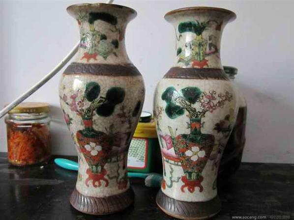 相关藏品: 一对全品的同志年间全彩的博古瓶