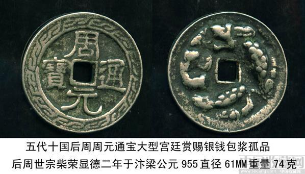 相关藏品: 五代十国后周周元通宝大型宫廷赏赐银钱包浆孤品