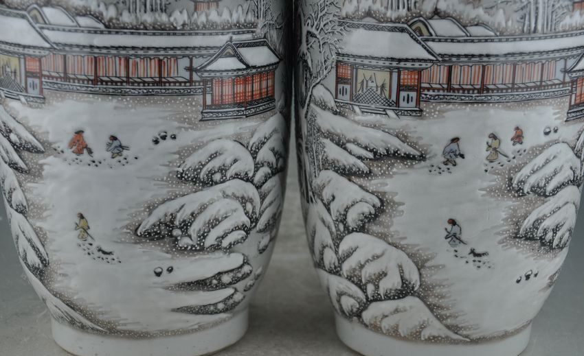 相关藏品: 民国珠山八友何许人雪景棒槌对瓶