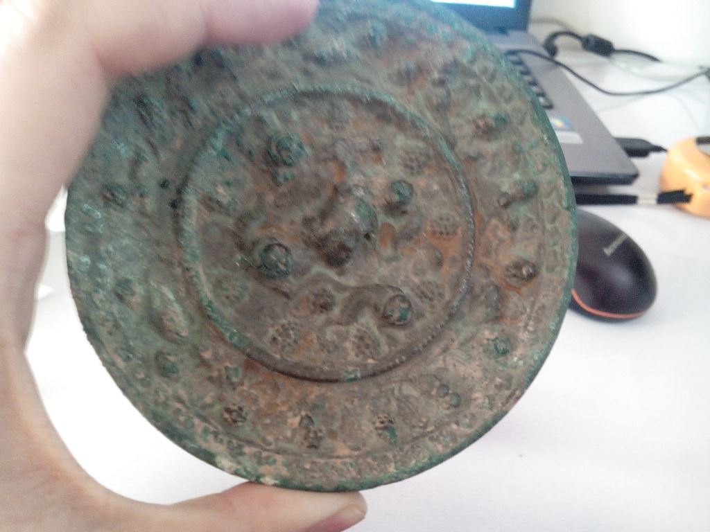 镜子是唐代的,直径9.5圆形内附了很多条壁虎还是啥不会看,总之很好了