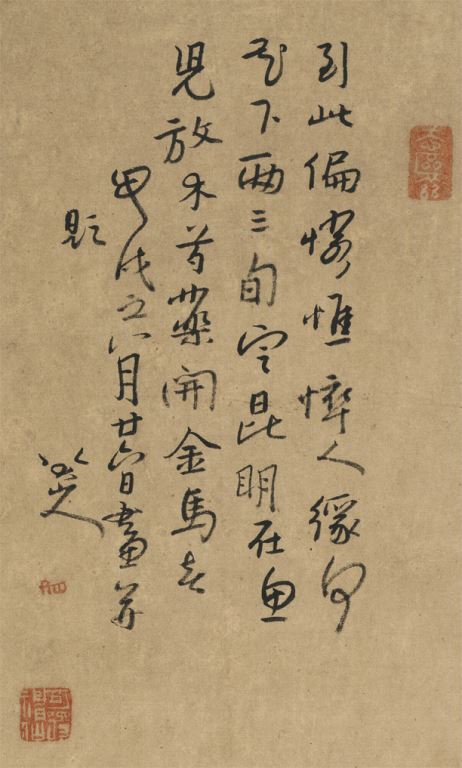 八大山人,明末清初画家、书法家,清初画坛“四僧”之一。原为明朝王孙,明灭亡后,国毁家亡,心情悲愤,落发为僧,他一生对明忠心耿耿,以明朝遗民自居,不肯与清合作。他的作品往往以象征手法抒写心意,如画鱼、鸭、鸟等,皆以白眼向天,充满倔强之气。笔墨特点以放任恣纵见长,苍劲圆秀,清逸横生,不论大幅或小品,都有浑朴酣畅又明朗秀健的风神。章法结构不落俗套,在不完整中求完整。朱耷的绘画对后世影响极大。 《河上花图卷》局部 八大山人以绘画为中心,对于书法、诗跋、篆刻也都有很高的造诣。在绘画上他以大笔水墨写意画著称,并善于泼墨,尤以花鸟画称美于世。   在创作上他取法自然,笔墨简练,大气磅礴,独具新意,创造了高旷纵横的风格。三百年来,凡大笔写意画派都或多或少受了他的影响。清代张庚评他的画达到了“拙规矩于方圆,鄙精研于彩绘”的境界。他作画主张“省”,有时满幅大纸只画一鸟或一石,寥寥数笔,神情毕具。他的书法具有劲健秀畅的气格。篆刻形体古朴,独成格局。   朱耷在形成自己风格的发展过程中,继承了前代的优良传统,又自辟蹊径。他的花鸟画,远宗五代徐熙的野逸画风和宋文人画家的兰竹墨梅,也受明林良、吕纪、陆治的技法影响,尤致意青藤白阳的粗放画风。他的山水画,远尚南朝宗炳,又师法董、巨、米芾、倪、黄以至董其昌等人的江南山水。    《眠鸭图》 朱耷绘画艺术的特点大致说来是以形写情,变形取神;着墨简淡,运笔奔放;布局疏朗,意境空旷;精力充沛,气势雄壮。他的形式和技法是他的真情实感的最好的一种表现。笔情恣纵,不构成法,苍劲圆秀,逸气横生,章法不求完整而得完整。他的一花一鸟不是盘算多少、大小,而是着眼于布置上的地位与气势。及是否用得适时,用得出奇,用得巧妙。这就是他的三者取胜法,如在绘画布局上发现有不足之处,有时用款书云补其意。八大山人能诗,书法精妙,所以他的画即使画得不多,有了他的题诗,意境就充足了,他的画,使人感到小而不少,这就是艺术上的巧妙。   他的山水画多为水墨,宗法董其昌,兼取黄公望,倪瓒、他用董其昌的笔法来画山水,却绝无秀逸平和,明洁幽雅的格调,而是枯索冷寂,满目凄凉,于荒寂境界中透出雄健简朴之气,反映了他孤愤的心境和坚毅的个性。他的用墨不同于董其昌,董其昌淡毫而得滋润明洁,八大山人干擦而能滋润明洁。所以在画上同是“奔放”,八大山人与别人放得不一样,同是“滋润”,八大山人与别人润得不一样。一个画家,在艺术上的表现,能够既不同于前人,又于时人所不及。他的花鸟画成就特别突出,也最有个性。其画大多缘物抒情,用象征手法表达寓意,将物象人格化,寄托自己的感情。清初画坛在革新与保守的对峙中,八大山人是革新派“四大画僧”中起了突出作用的一人。   在书法方面,其善用淡墨秃笔,犹尽流畅,含蓄内敛,圆浑醇厚。他精研石鼓文,刻意临写汉、魏、晋、唐以来的诸家法帖,尤以王羲之的为多。其诗文多幽涩古雅。