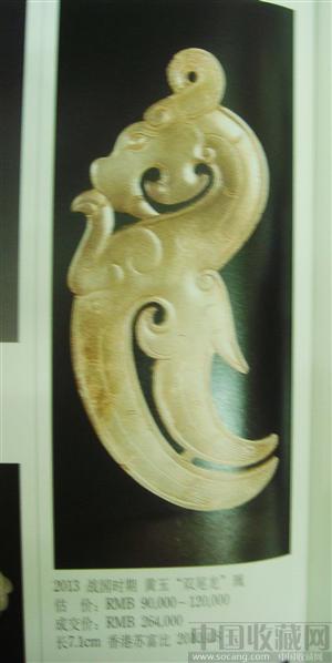 ;;汉代龙凤纹长形佩,沁色漂亮,雕工精致。大凤挺精神,小龙很可爱,造型颇少见,沁色真美丽。玉质白且润,过目难得忘。图三是现藏河北省博物馆的西汉凤鸟玉件。图四是香港苏富比2010年以26万拍出的战国双尾龙玉佩(长7.1公分)。本器长15.5公分。参考价15万。联系手机13709224661邮箱;;;;;;;;;;;;;;