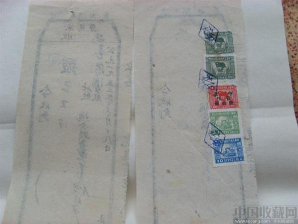 一个正面一个背后共6个印花税票.很难得’保真保老