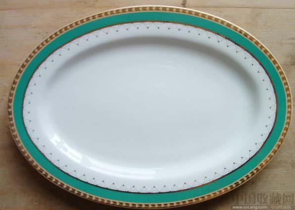 宽金边骨质瓷鱼盘,31cm*22cm,磁州窑,骨质瓷,该瓷制作原料用牛骨和瓷土按一定比例配制而成,制作工艺比一般瓷复杂的多,有数十道工序,胎薄质细似玉一样。50元;;;