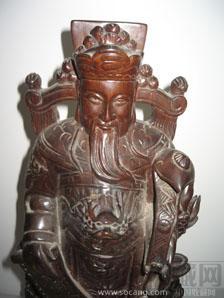 ;;;;;;;高45.5厘米。年代:民国。该财神由黄杨木雕刻而成。他左手拿着如意,右手拿着招财进宝,胸部雕一龙头,下部雕有一条四爪龙,另雕有香炉、金元宝、松柏、祥云等。该财神木质优良、雕刻精细,是一件木雕精品。值得收藏。联系电话;18972416578