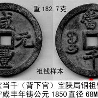 清咸丰元宝当千(背下官)宝陕局铜祖钱包浆大珍