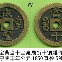 清咸丰重宝背当十宝泉局折十铜雕母样钱仅见